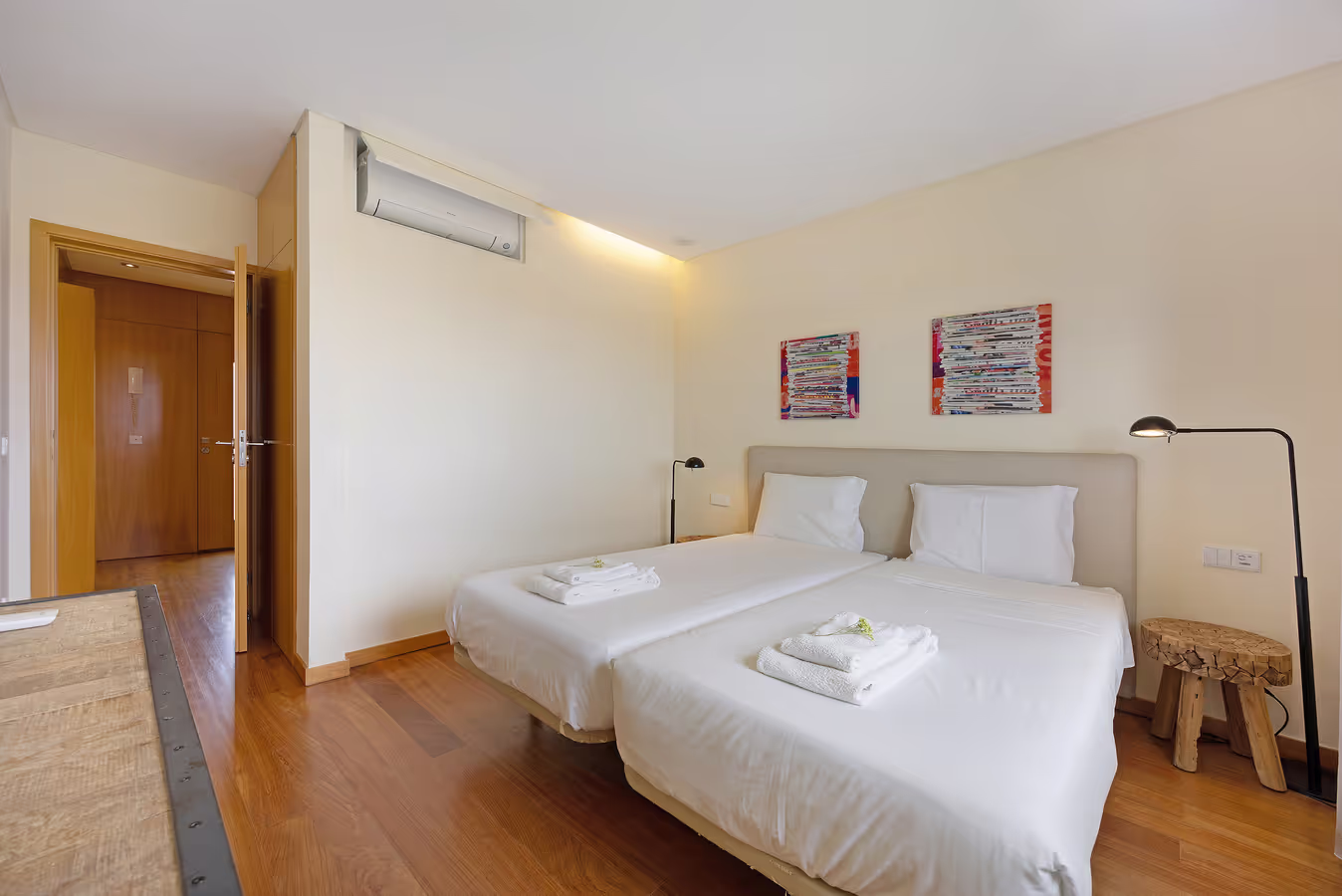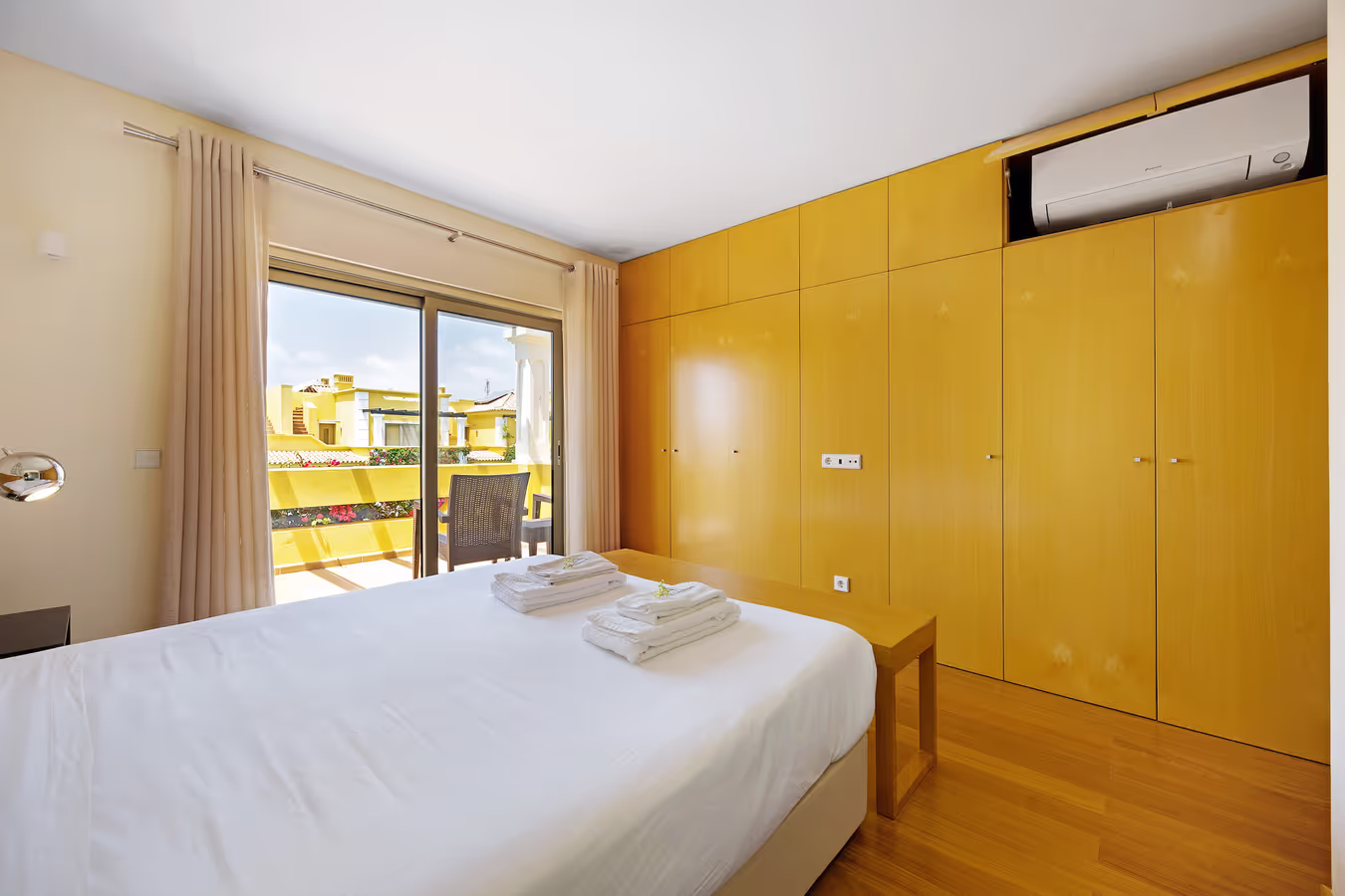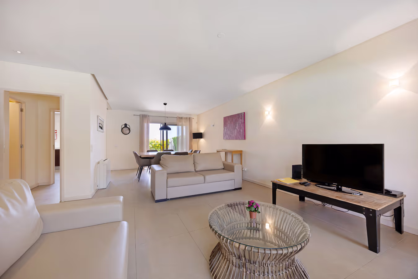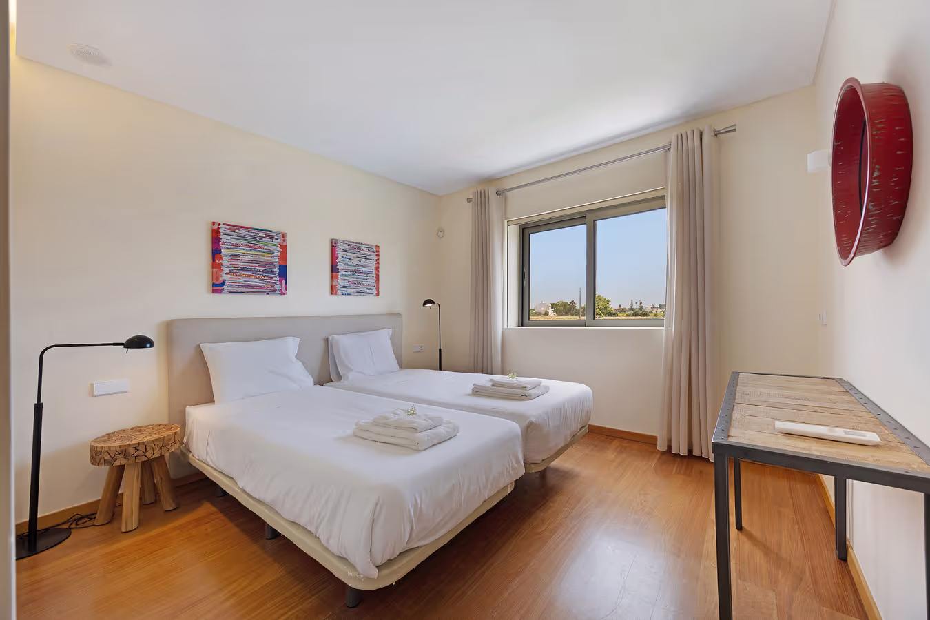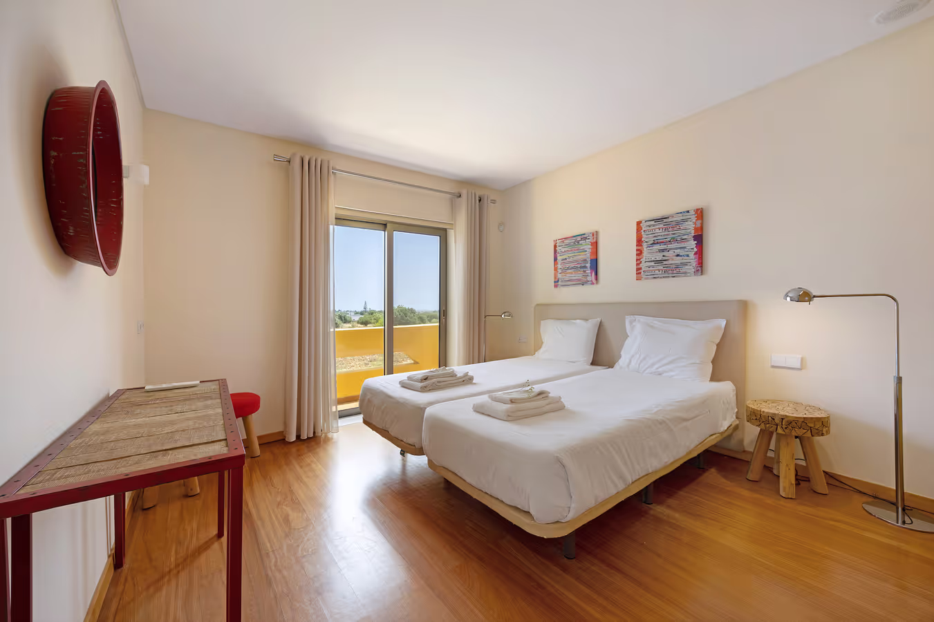 This 3 bedroom elegant villa in Tavira with a private terrace, balcony, and access to a beautiful shared pool and garden. Located in a secure gated community, this property is ideal for families or groups seeking comfort and privacy just minutes from the Algarve coast. This modern and luxurious three-bedroom villa offers everything you need for a memorable stay in the Algarve. On the upper floor, enjoy peaceful moments on the suite’s balcony while enjoying the views. The outdoor spaces include a shared pool and an inviting garden for relaxing and soaking up the sun. The house features three comfortable bedrooms—two with double beds and one with two single beds—a fully equipped kitchen and bright living areas. On the lower floor, you’ll find a cozy living room, a fully equipped kitchen, and a guest bathroom. The master suite has a private bathroom with a bathtub, ensuring comfort and privacy. For added convenience, the villa features a private garage with direct access to the house, WiFi, a television, and air conditioning in all bedrooms and common areas, ensuring an even more comfortable stay. The property’s exterior features a well-kept garden, ideal for al fresco dining and leisure time.