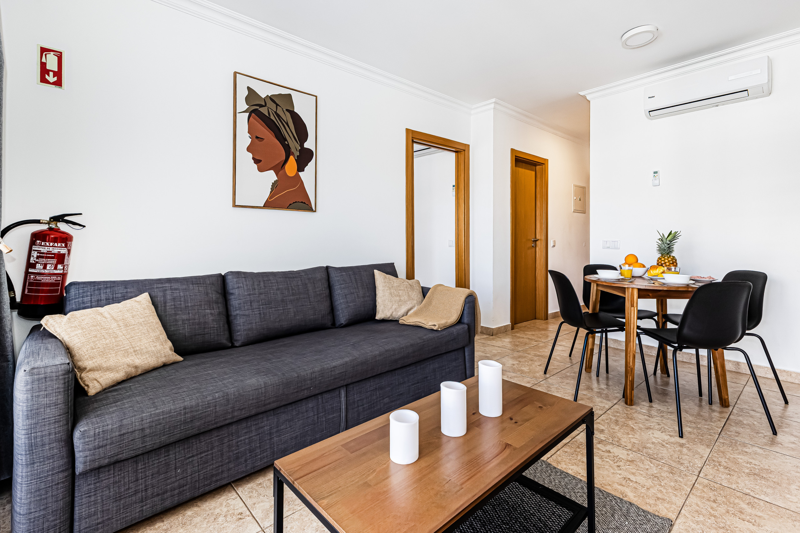 This cozy 1 bedroom apartment in Portimão is a perfect balance of comfort, location, and tranquility. Ideal for couples looking to relax near the beach and city center, located in a quiet residential area. This apartment consists of 1 bedroom and 1 bathroom, a fully equipped kitchen and a spacious living room.