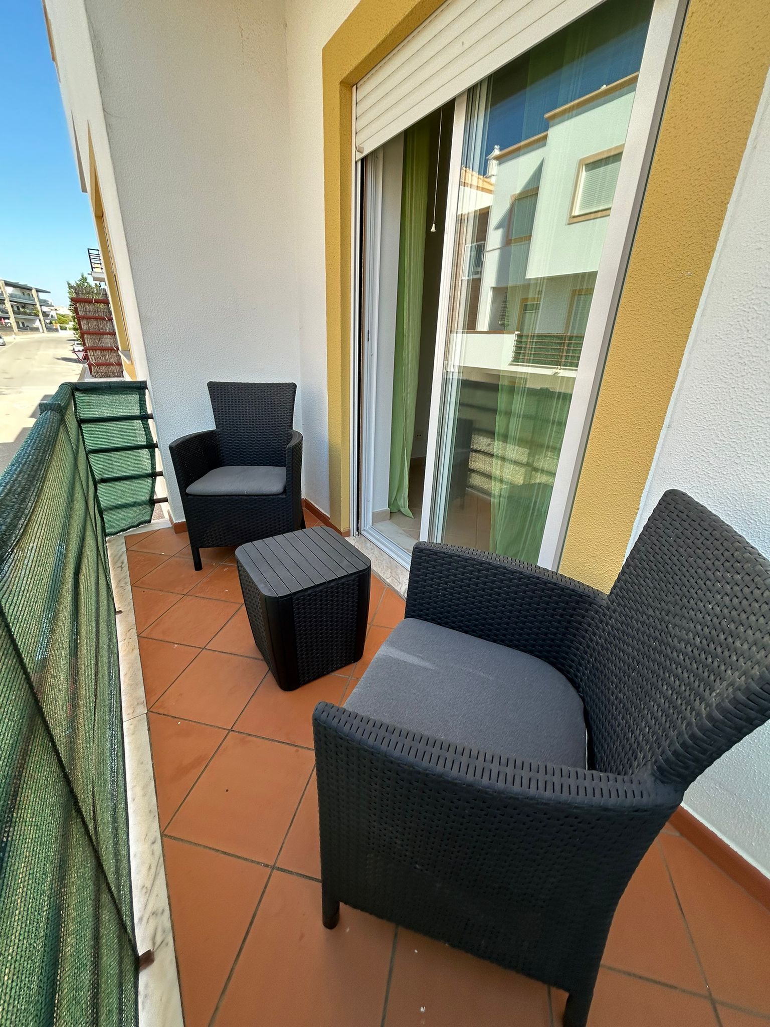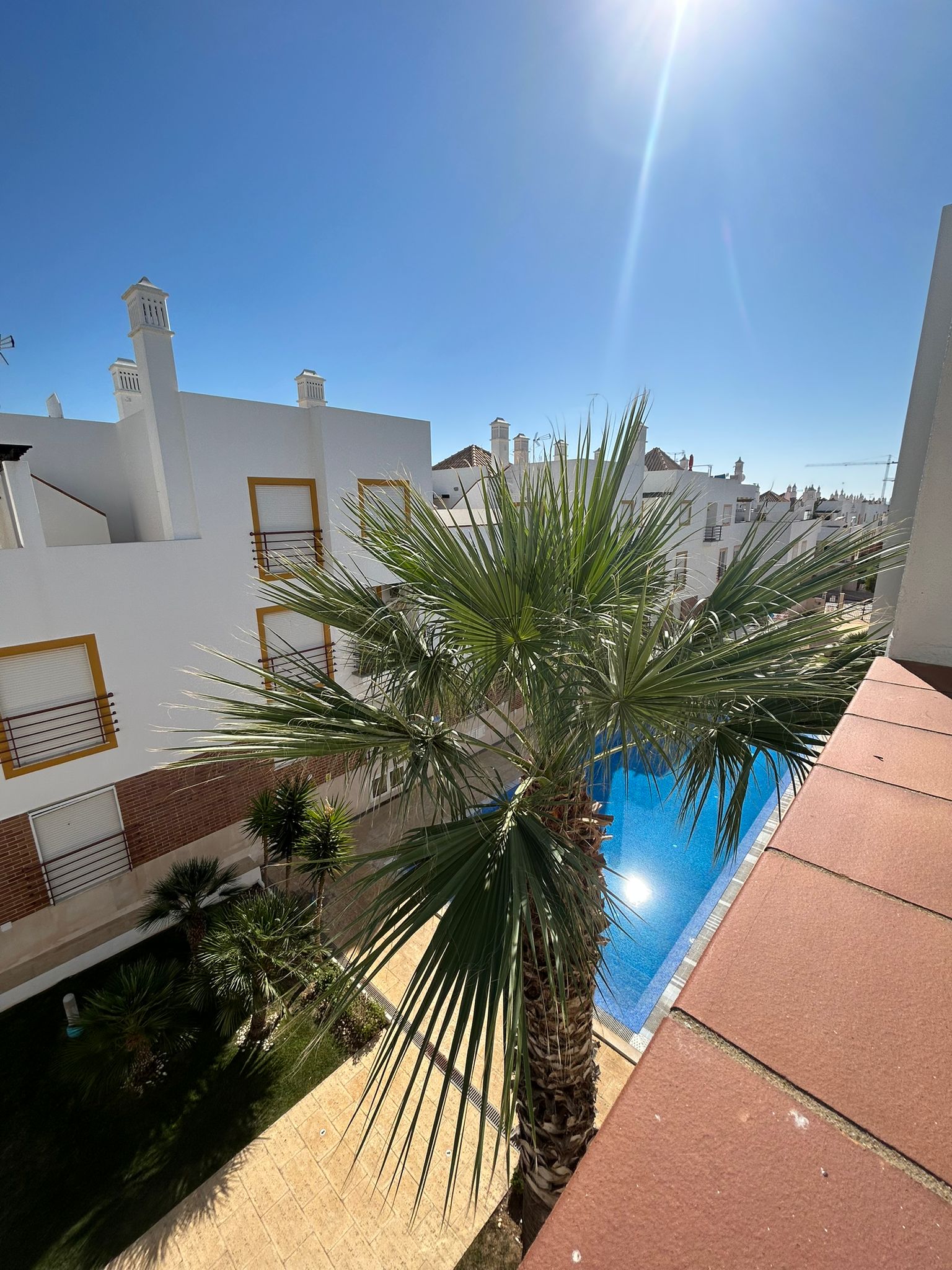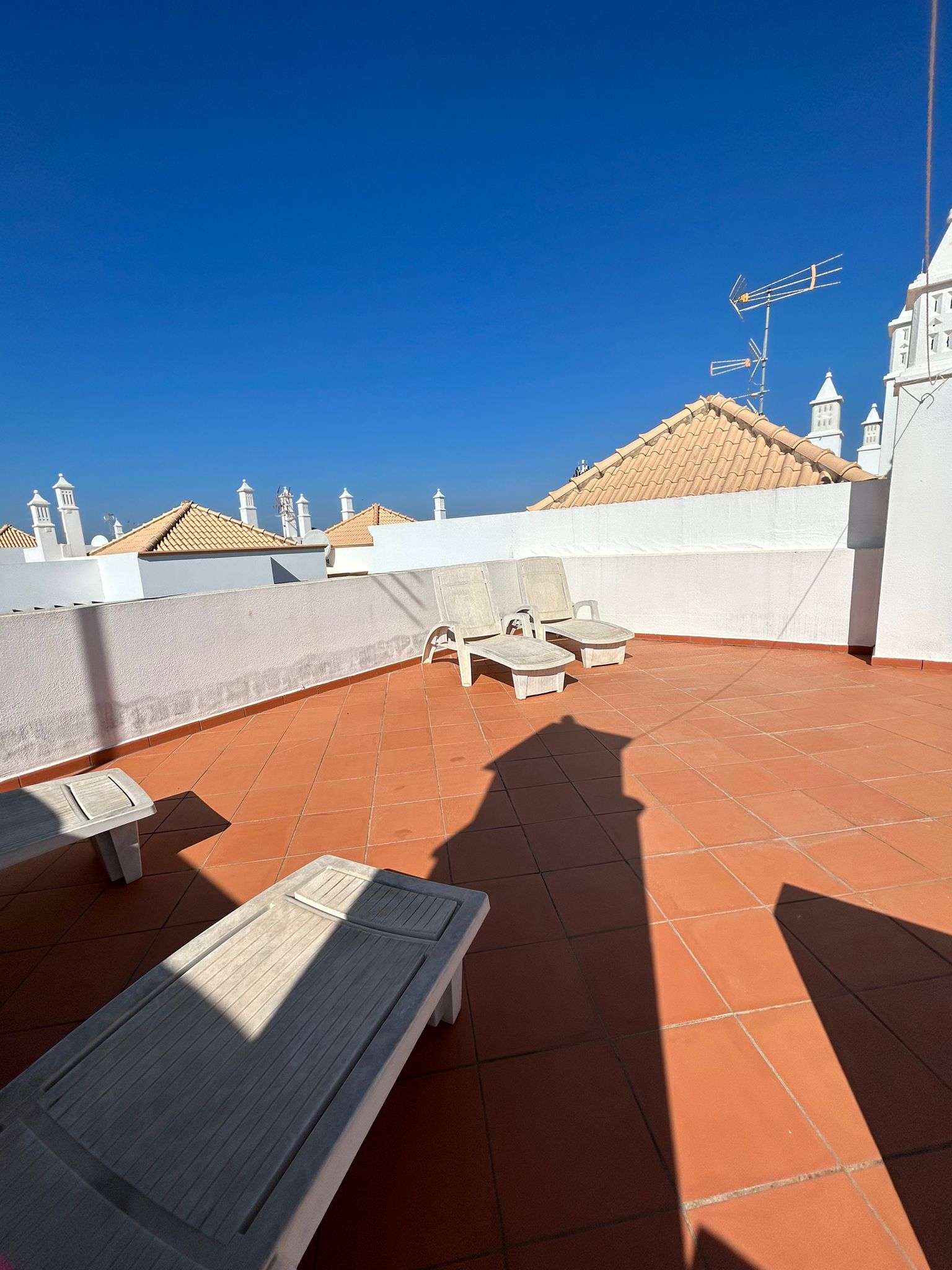This quaint Duplex apartment in Cabanas de Tavira is located in a nice condominium with garden and swimming pool. It consists of three bedrooms and three bathrooms, good-sized and fully furnished, with a kitchen equipped with all necessary appliances. All bedrooms have balconies and are a good size. It has two terraces where you can enjoy the good weather and a view of the condominium’s swimming pool. It also includes a small storage room. Air conditioning. Located very close to Cabanas Beach.