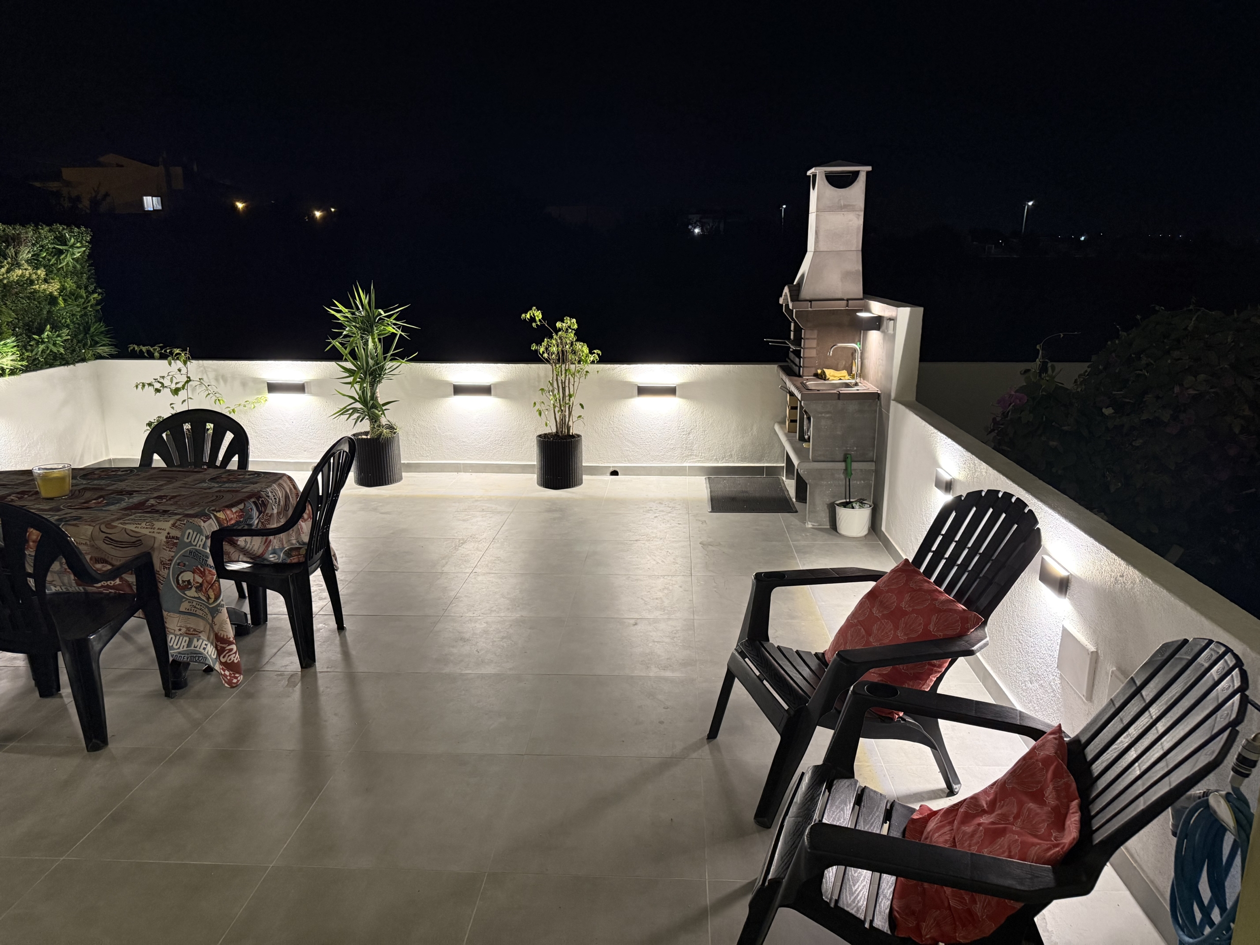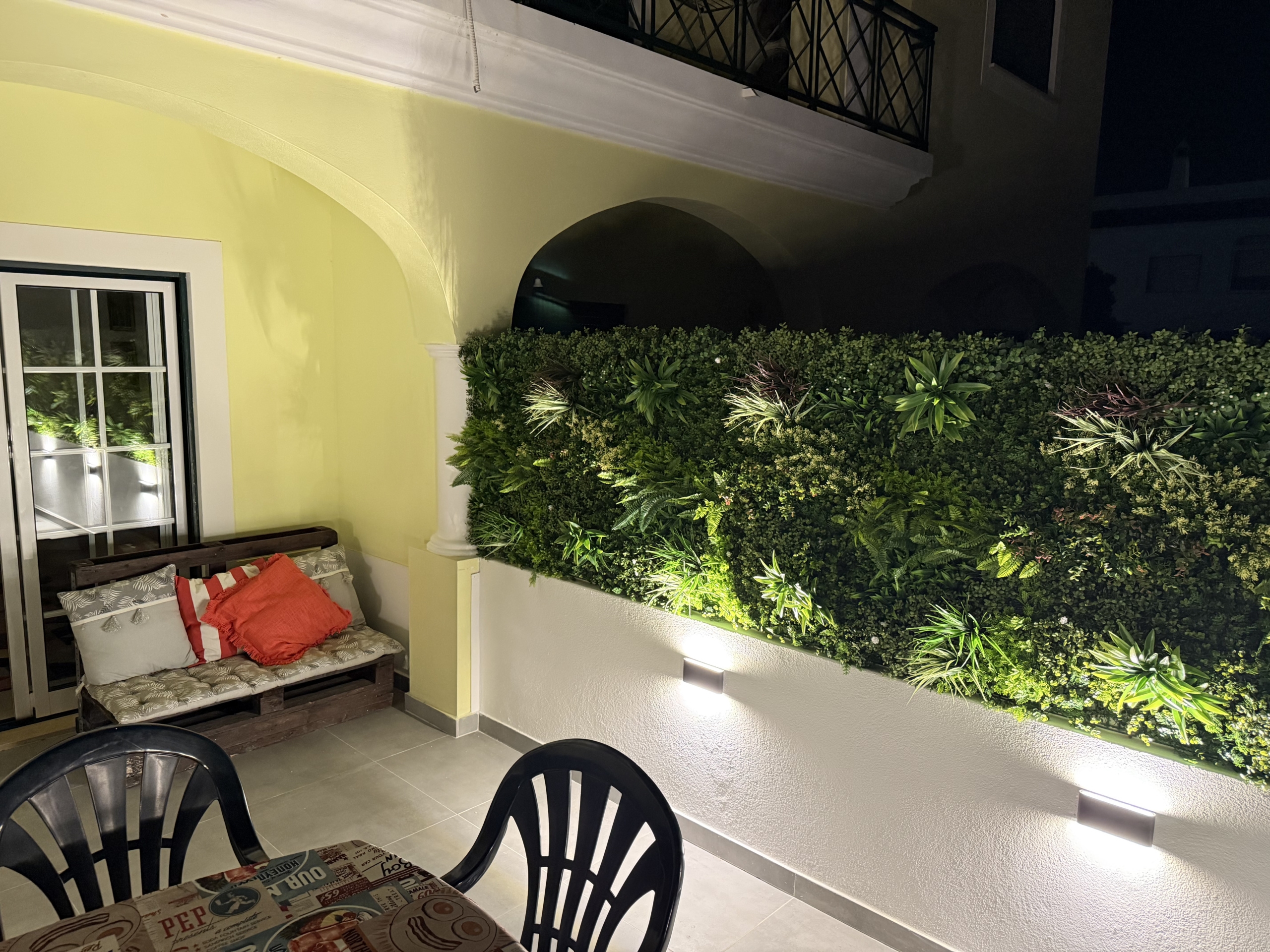 This comfortable and spacious accommodation is spread over two floors, with an approximate area of 150 square meters. Next to the entrance we find the communal pool of the condominium and a small garden. On the ground floor is the fully equipped kitchen, the service bathroom and the living room. From the living room we have access to the balcony and a small outdoor area with grass and fruit trees. Upstairs are the bedrooms and a complete bathroom. One of the bedrooms is ensuite and has a private bathroom. Two of the bedrooms have king size beds and one bedroom has three single beds.