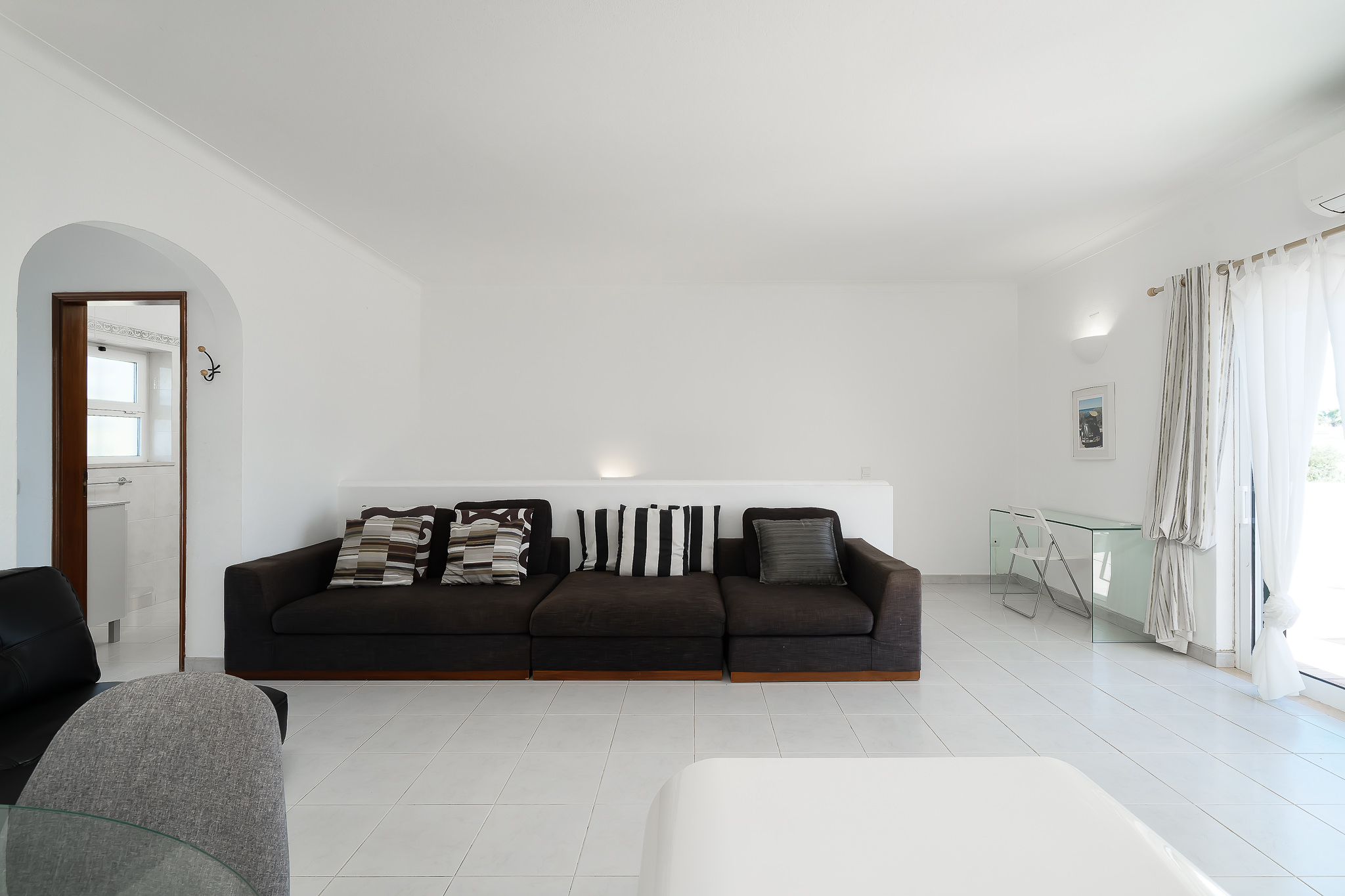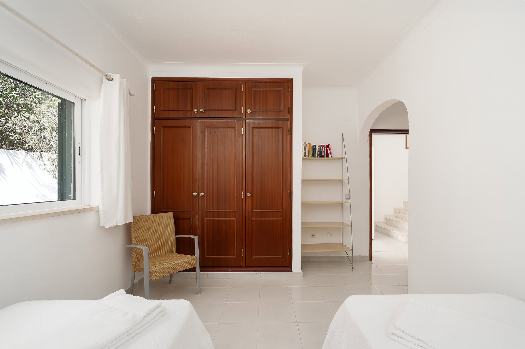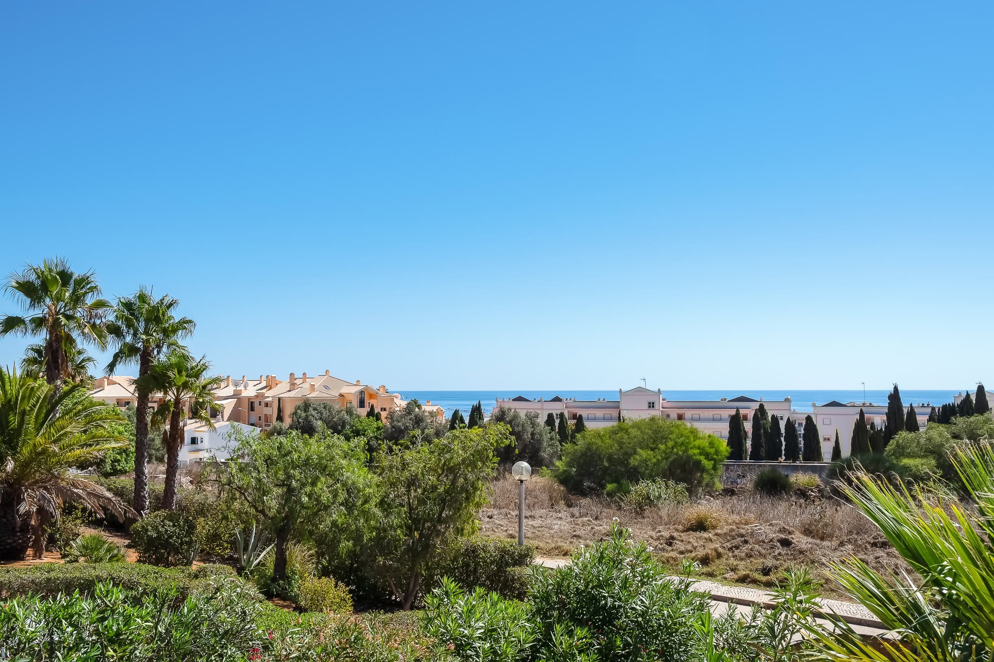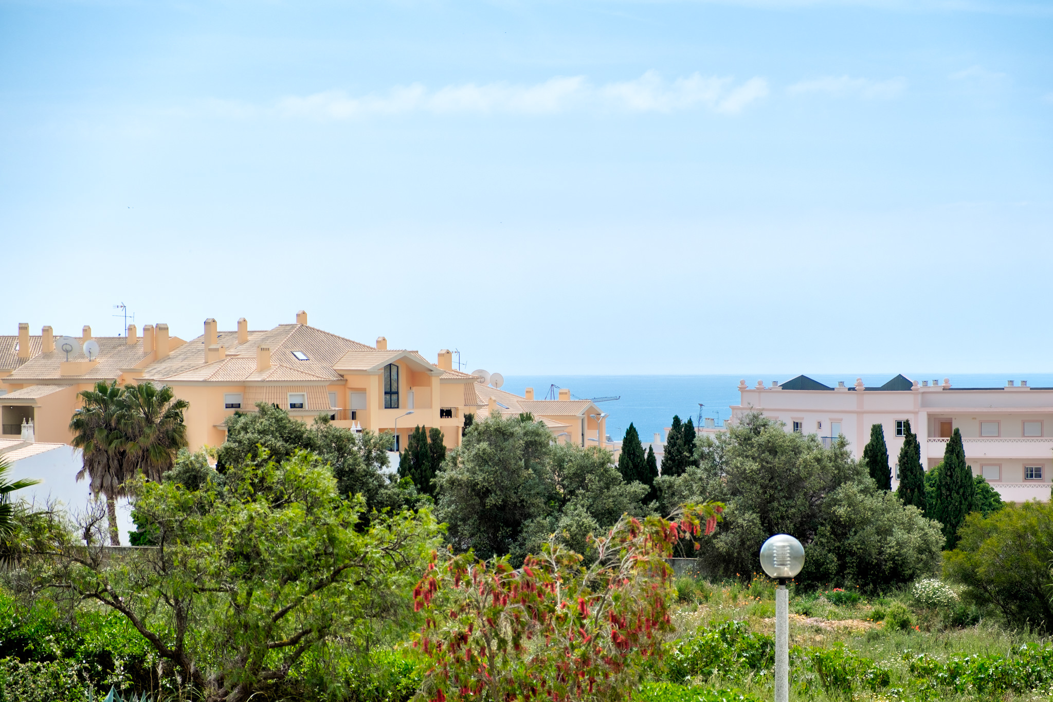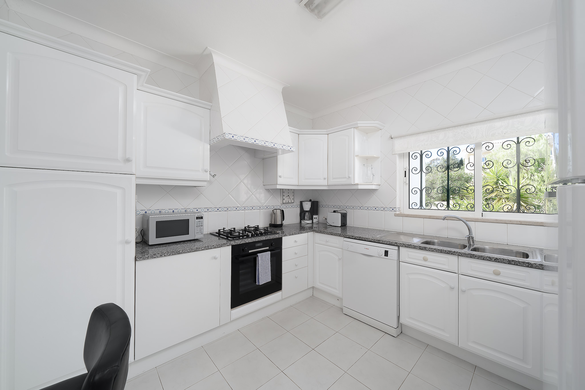 This semi detached villa in Praia da Luz is located in a quiet spot with a wonderful shared garden and a private pool, within easy reach of the beach in Luz and restaurants. This villa is fantastic value and offers a master bedroom with en-suite, a further double bed bedroom and a twin, as well as a family bathroom. South facing bedrooms have their little private terrace overlooking the pool. Upstairs a big lounge and open plan kitchen, both leading to a terrace, with views of the pool, the shared mature garden and of the village of Luz. The kitchen is well equipped, and has a lot of space for family and friends to cook together. The living area has plenty of sitting, a big screen TV with HD Cable TV and a dining area. There is space for dining and BBQ outside on the terrace. There is also High Speed Fiber Internet. The villa is centrally located, close to everything but in a tranquil area. There is private parking for the villa. This villa is about 10 to 15 minutes walk from numerous restaurants, supermarkets, bars, the promenade and the beach in Luz.