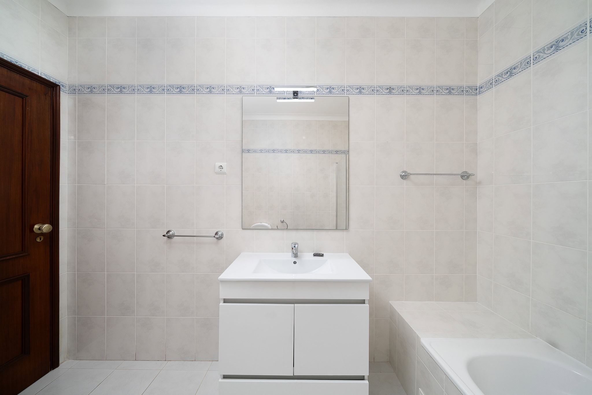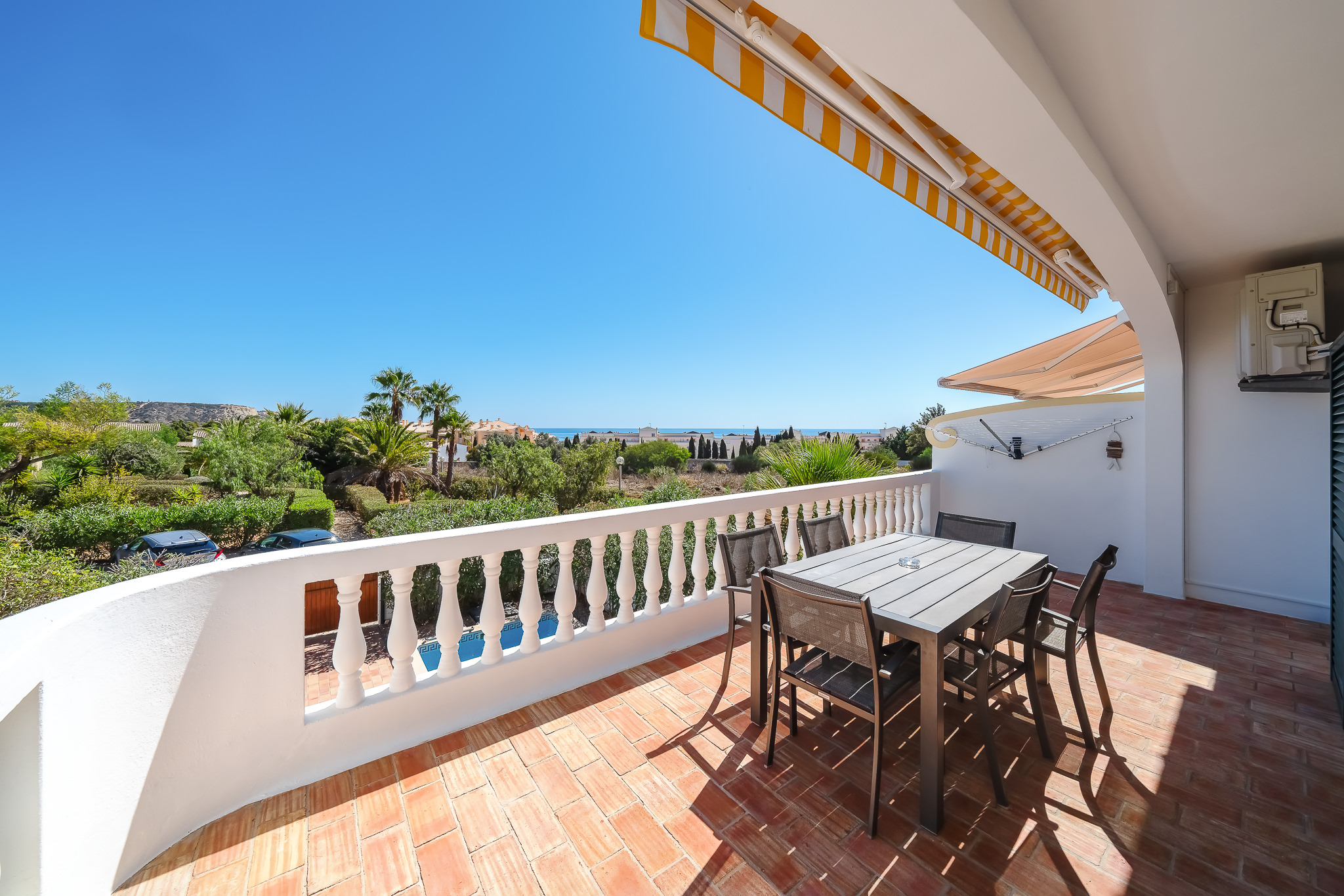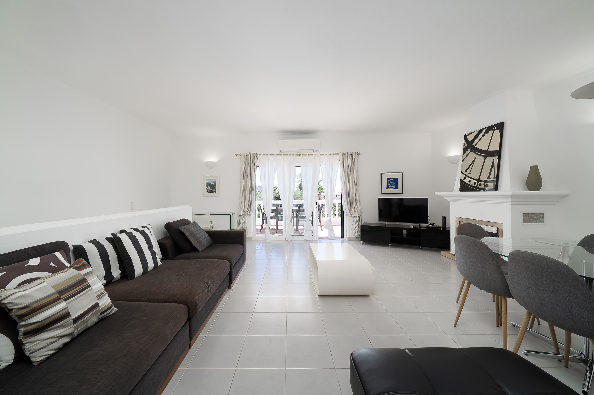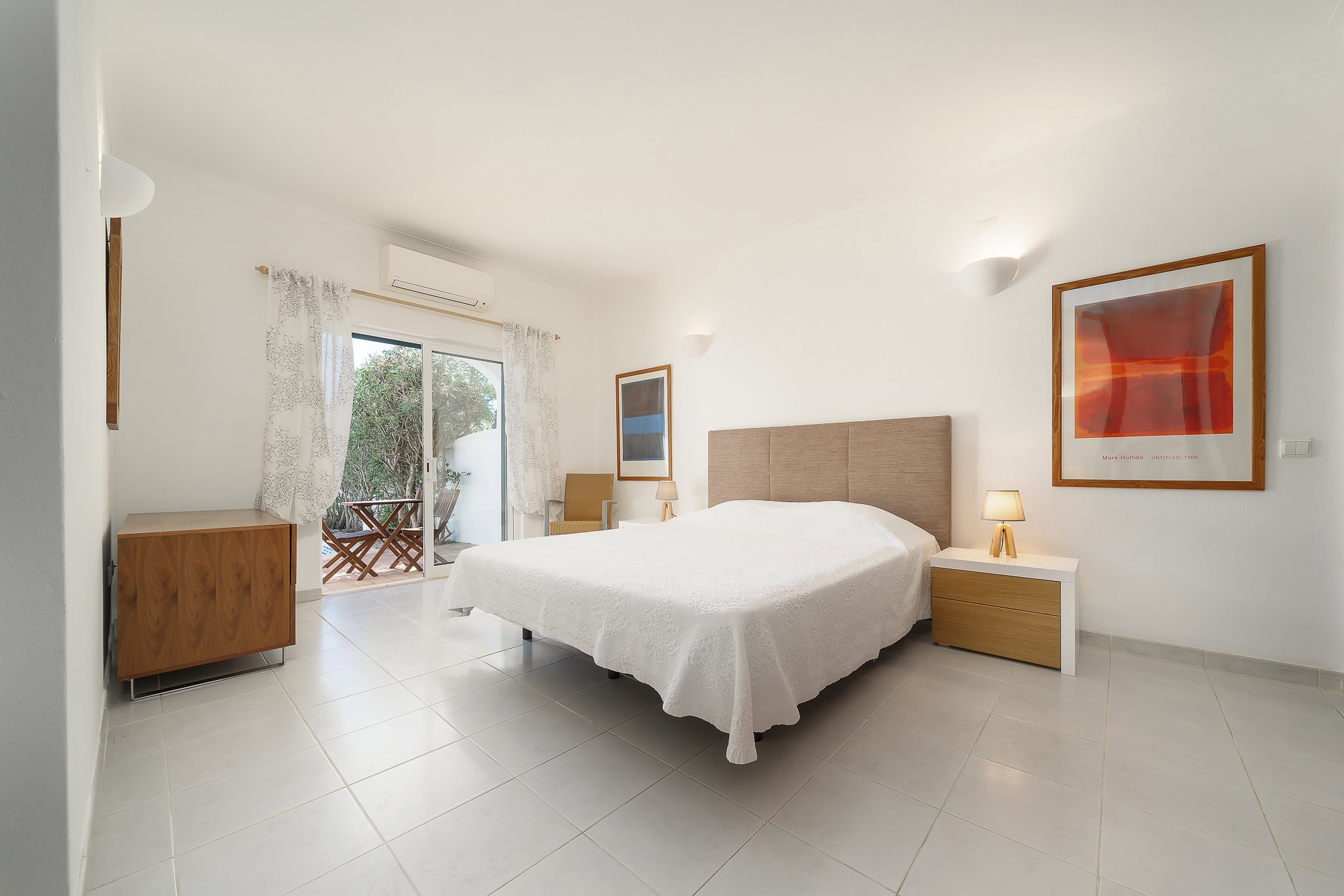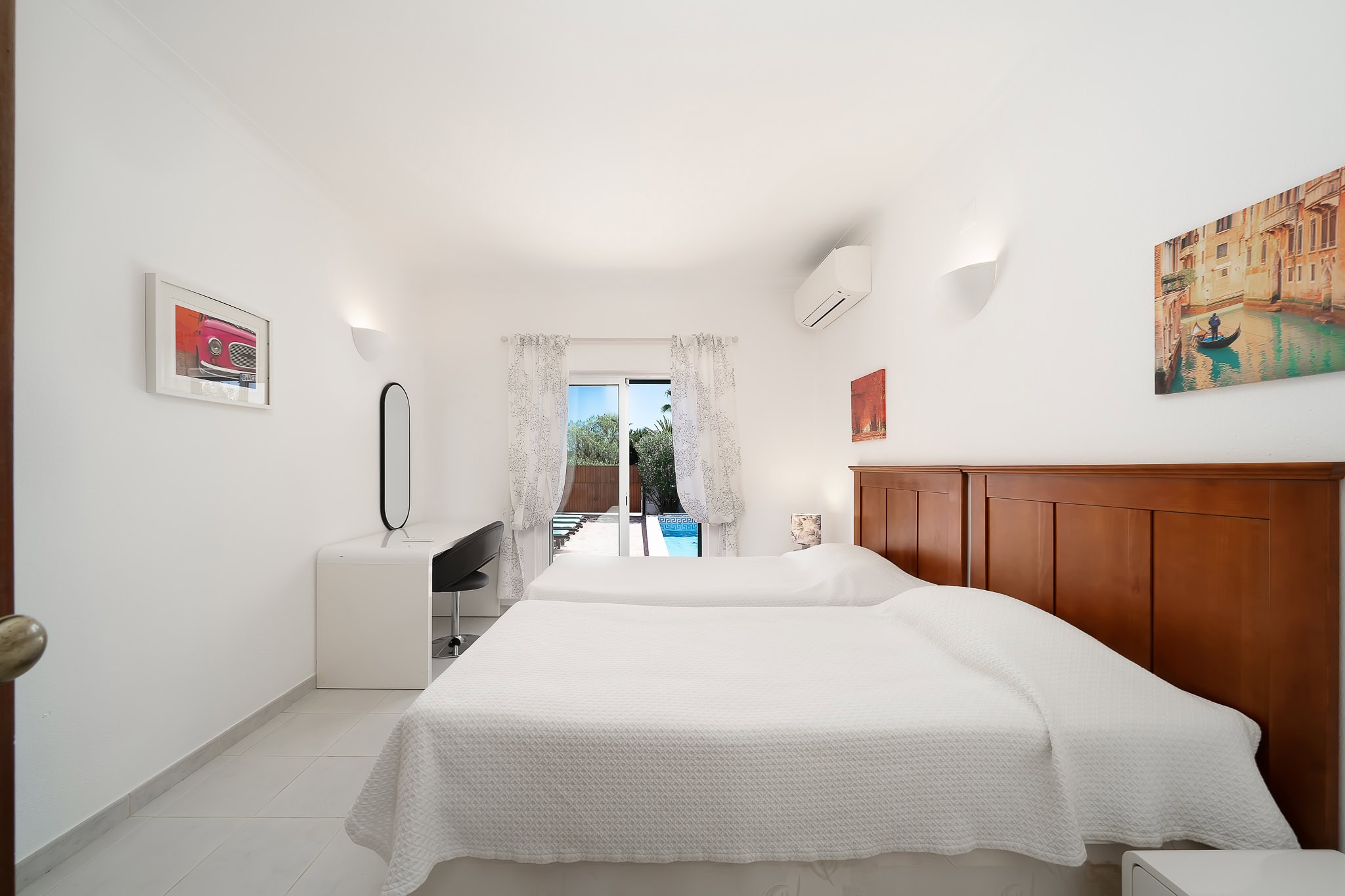 This semi detached villa in Praia da Luz is located in a quiet spot with a wonderful shared garden and a private pool, within easy reach of the beach in Luz and restaurants. This villa is fantastic value and offers a master bedroom with en-suite, a further double bed bedroom and a twin, as well as a family bathroom. South facing bedrooms have their little private terrace overlooking the pool. Upstairs a big lounge and open plan kitchen, both leading to a terrace, with views of the pool, the shared mature garden and of the village of Luz. The kitchen is well equipped, and has a lot of space for family and friends to cook together. The living area has plenty of sitting, a big screen TV with HD Cable TV and a dining area. There is space for dining and BBQ outside on the terrace. There is also High Speed Fiber Internet. The villa is centrally located, close to everything but in a tranquil area. There is private parking for the villa. This villa is about 10 to 15 minutes walk from numerous restaurants, supermarkets, bars, the promenade and the beach in Luz.